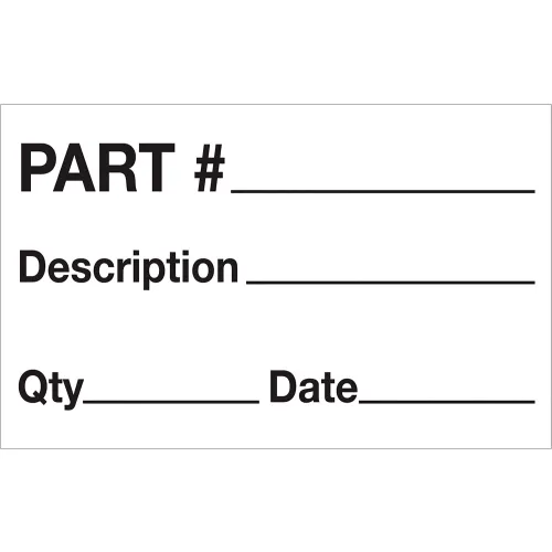 Tape Logic® Labels w/ "Part#-Description-Qty..." Print, 2"L x 1-1/4"W, Black/White, Roll of 500