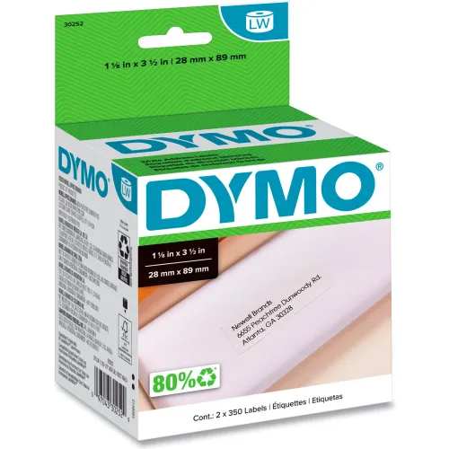 DYMO LabelWriter® Address Labels, 1-1/8" x 3-1/2", White, 350 Labels/Roll, 2 Rolls/Pack