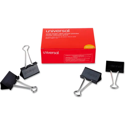 Universal® Large Binder Clips, Steel Wire, 1" Capacity, 2" Wide, Black/Silver, Dozen
