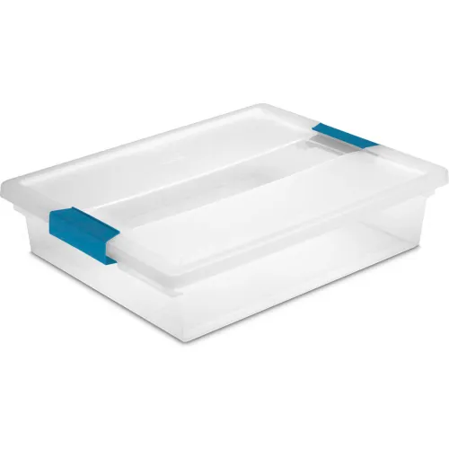 Sterilite Plastic Large Clip Storage Box with Latched Lid, 14"L x 11"W x 3-1/4"H, Clear - Pkg Qty 6
