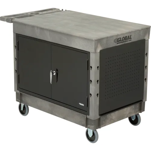 Global Industrial Top Flat Shelf Utility Cart w/Cabinet, 500lb. Capacity, 5" Casters, Gray