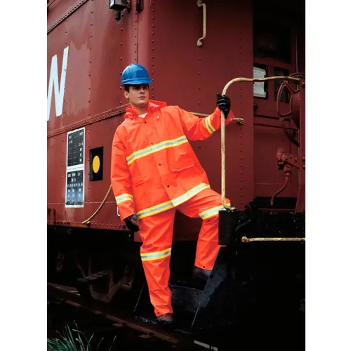 MCR Safety 2013RL Luminator™ 3-Piece Rain Suit, Orange w/ Lime Silver Stripes, Large