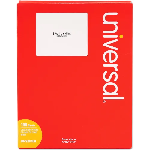 Universal® Laser Printer Permanent Labels, 3-1/3 x 4, White, 600 Labels