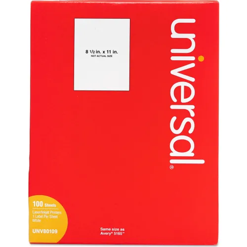 Universal® Laser Printer Permanent Labels, 8-1/2 x 11, White, 100 Labels