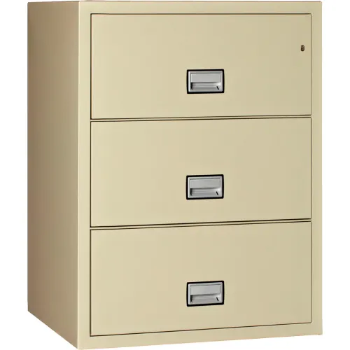 Phoenix Safe 3 Drawer Lateral File Cabinet, Letter & Legal Size, 31"W x 23-5/8"D x 41-3/4"H, Putty