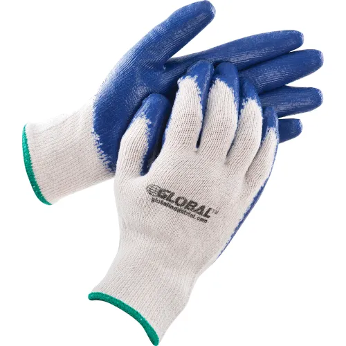 Global Industrial™ Latex Coated String Knit Work Gloves, Natural/Blue, Medium, 12 Pairs