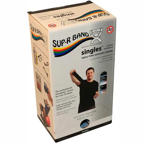 Sup-R Band® Latex Free Exercise Band, 5' Strips, Black, 30 Strips/Box
