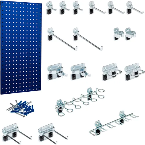 Triton Products 18"W x 36"H Steel Square Hole Pegboard with 18 Assorted LocHooks, Blue