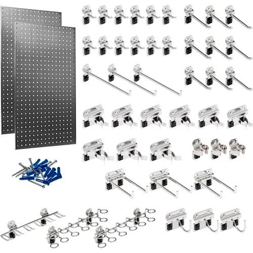 Triton Products 24"W x 421/2"H Stainless Square Hole Pegboards w/, 45 pc Stainless Steel LocHooks