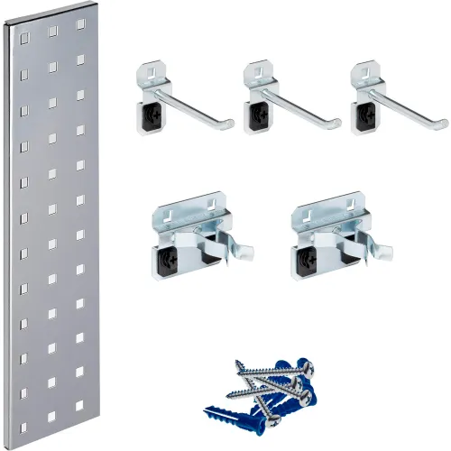Triton Products Silver Tool Pegboard Kit w/1 18" x 4.5" Steel Square Hole Pegboard & 5 pc LocHooks