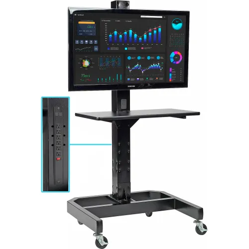Global Industrial™ LCD/Plasma Mobile Workstation with Power Outlet, Black