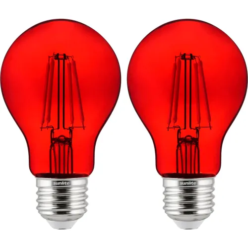 Sunlite® LED A19 Colored Filament Light Bulb, E26 Base, 4.5W, 33 Lumens, Red, Pack of 2