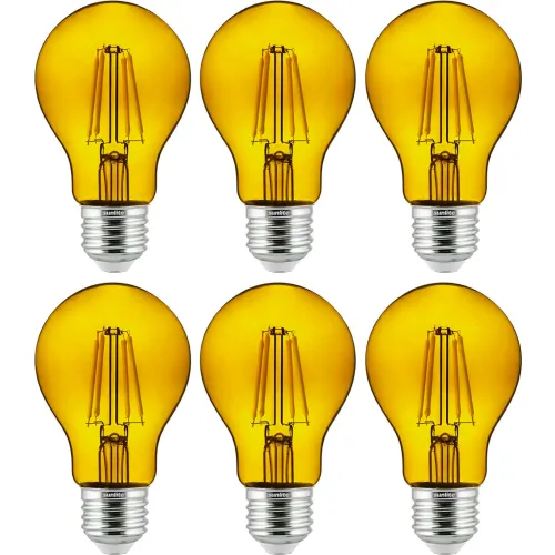 Sunlite® LED A19 Colored Filament Light Bulb, E26 Base, 4.5W, 420 Lumens, Yellow, Pack of 6