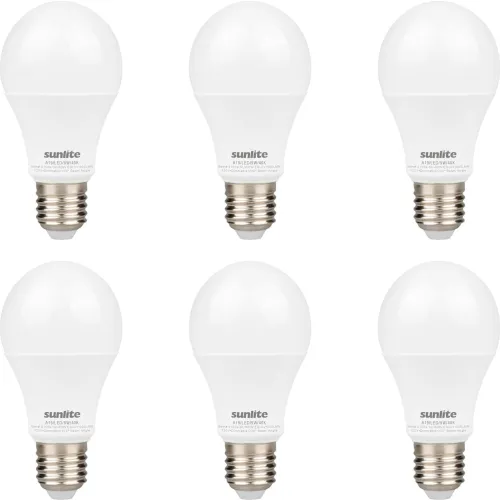 Sunlite® LED A19 Light Bulb, E26 Base, 9W, 800 Lumens, 4000K, Cool White, Pack of 6