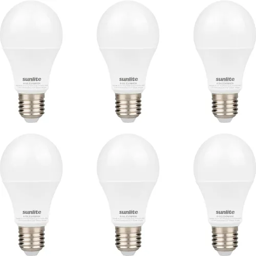 Sunlite® LED A19 Light Bulb, E26 Base, 9W, 800 Lumens, 6500K, Daylight, Pack of 6
