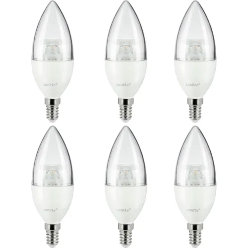 Sunlite® LED B10 Torpedo Clear Light Bulb, E14 Base, 5W, 470 Lumens, 27K, Warm White, Pack of 6