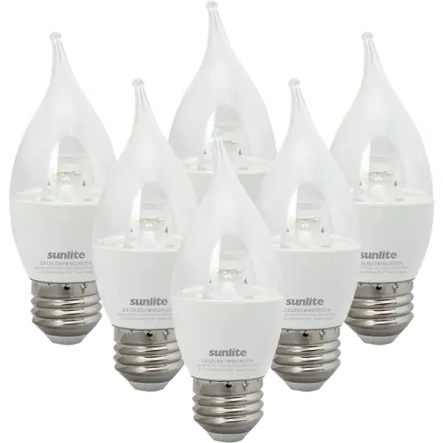 Sunlite® LED CA12 Chandelier Light Bulb, E26 Base, 7W, 500 Lumens, 2700K, Soft White, Pack of 6