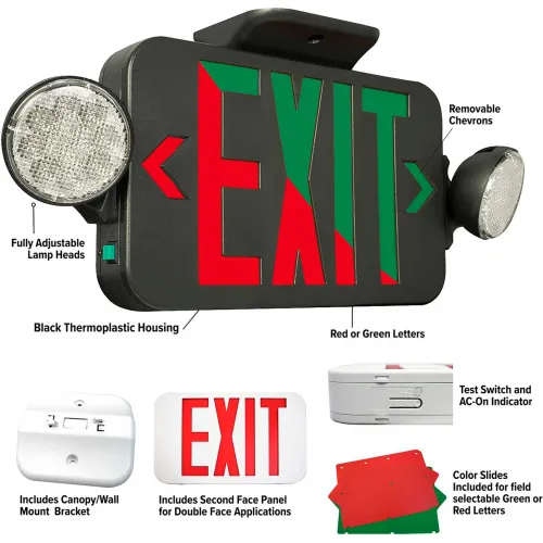 Hubbell LED Emergency/Exit Combo with Field Selectable Red or Green LEDs, Black, 120/277V