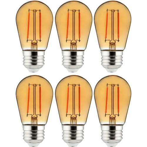 Sunlite® LED S14 Colored String Filament Light Bulb, E26 Base, 2W, Transparent Amber, Pack of 6