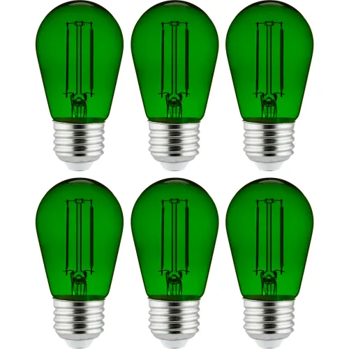 Sunlite® LED S14 Colored String Filament Light Bulb, E26 Base, 2W, Transparent Green, Pack of 6