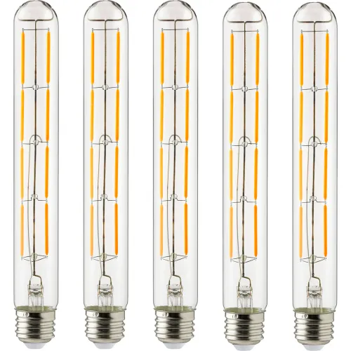 Sunlite® LED T10 Tubular Filament Light Bulb, E26 Base, 6W, 570 Lumens, 2200K, Amber, Pack of 5