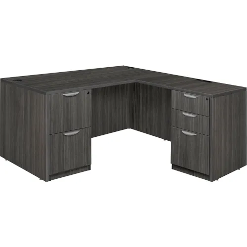 Regency Legacy 60" Double Full Pedestal L-Desk with 35" Return, Ash Grey