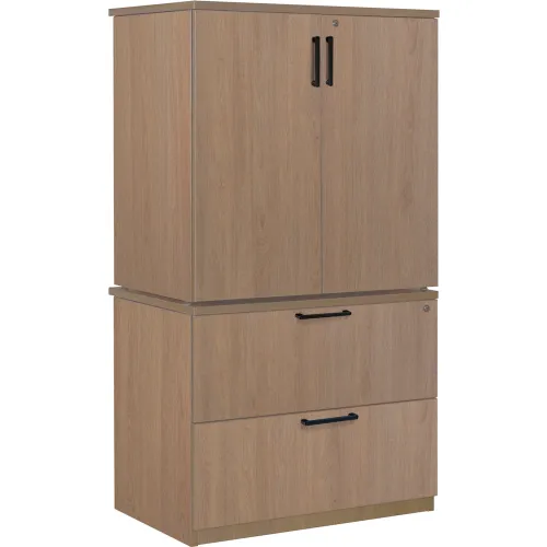 Regency® Legacy Lateral File with Stackable Storage Cabinet, 35"W x 24"D x 65"H, Noble Oak