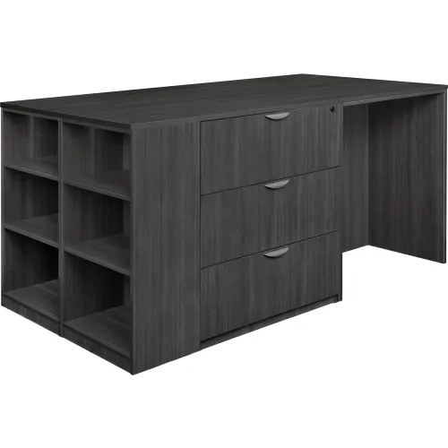 Regency Legacy Stand Up 2 Lateral File/ 2 Desk Quad with Bookcase End, Ash Grey