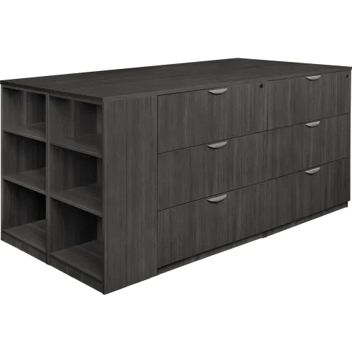 Regency Legacy Stand Up 2 Lateral File/ Storage Cabinet/ Desk Quad with Bookcase End, Ash Grey
