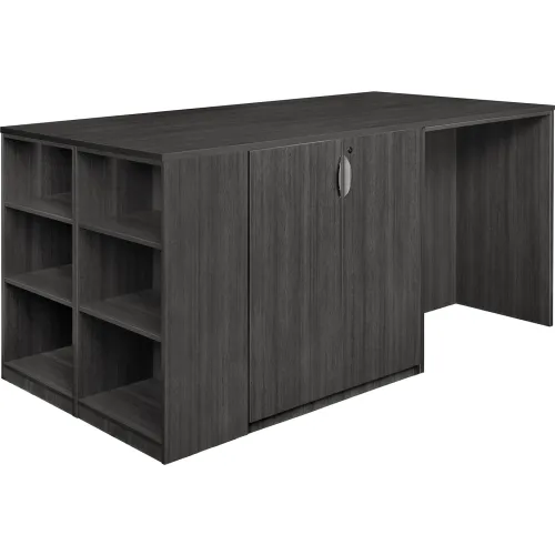 Regency Legacy Stand Up 2 Storage Cabinet/ 2 Desk Quad with Bookcase End, Ash Grey