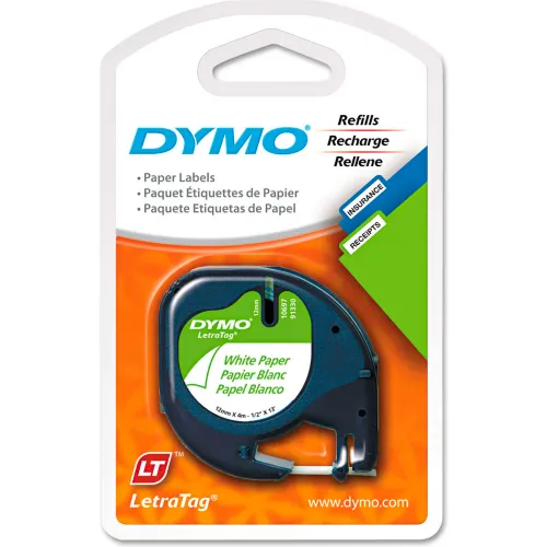 DYMO® LetraTag Paper Label Tape Cassette, 1/2" x 13ft, White, 2/Pack