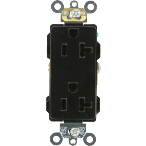 Leviton 16362-E 20a, 125v, Decora Plus Duplex Receptacle, Self Grounding, Black - Pkg Qty 10