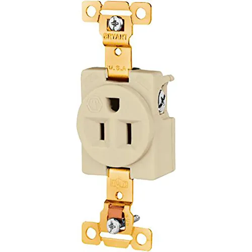 Leviton 5251-I 15A, 125V, Single Receptacle, Ivory - Pkg Qty 10