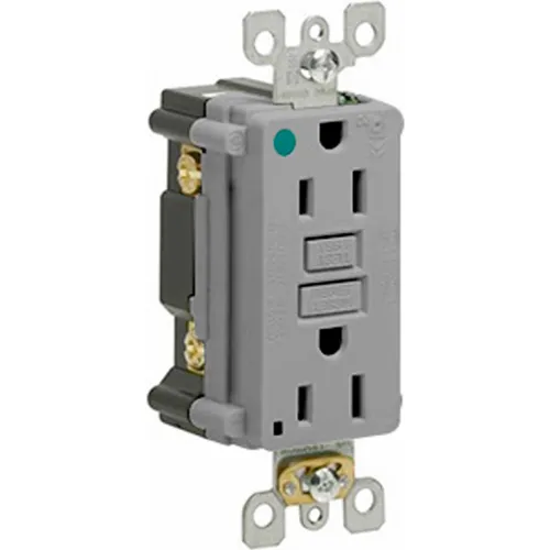 Leviton GFNT1-HFG 15A, 125V, SmartlockPro Slim Self-Test GFCI Receptacle, Hospital Grade, Gray