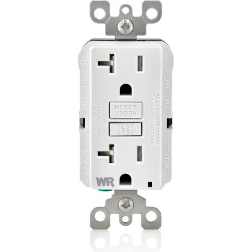 Leviton GFWT2-W 20A SmartlockPro Self-Test GFCI Duplex Receptacle, Weather & Tamper Resistant, White