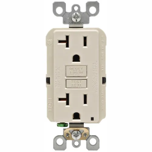 Leviton GFNT2-T 20A SmartlockPro Self-Test GFCI Duplex Recpt, Ind Light, Wire Leads, Light Almond