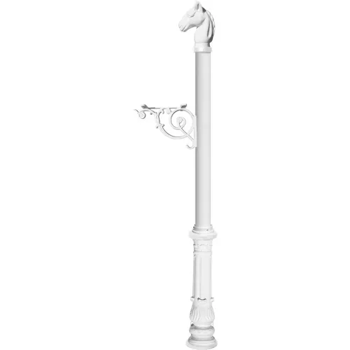 Lewiston Equine Post Only w/Support Bracket, Horsehead Finial & Decorative Ornate Base, White