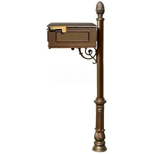 Lewiston Mailbox, Post (Ornate Base & Pineapple Finial), Support Brace (No Address Plates), Bronze