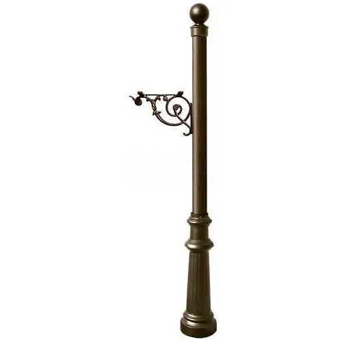 Lewiston Post with Support Brace, Decorative Fluted Base & Ball Finial, (No Mailbox), Bronze