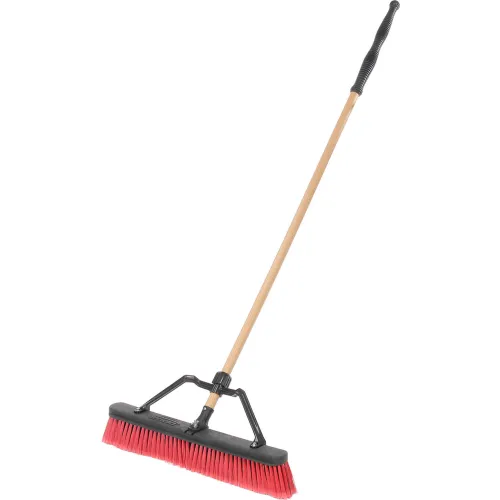 Libman Commercial Push Broom W/Hard Polymer Support Brace, 24" Medium Duty Bristles Wood Handle- 827 - Pkg Qty 4