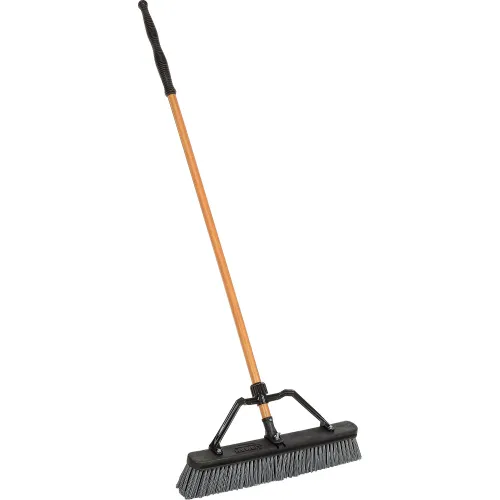 Libman Commercial Push Broom W/Hard Polymer Support Brace, 24"W Heavy-Duty Bristles Wood Handle- 829 - Pkg Qty 4