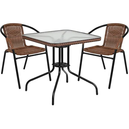 Flash Furniture Lila 3 Piece Square Glass Metal Table w/ Stack Chairs, Dark Brown