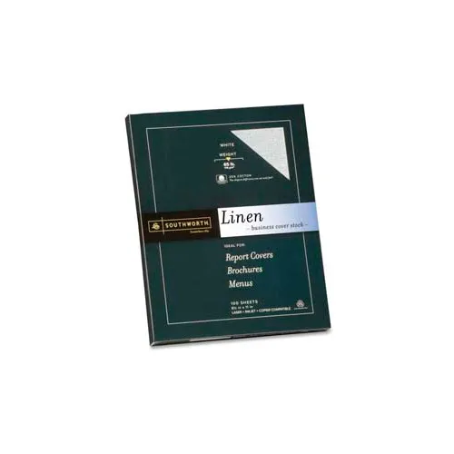 Southworth® Linen Cover Stock Paper, 8-1/2" x 11", 65 lb, Linen, White, 100 Sheets/Pack