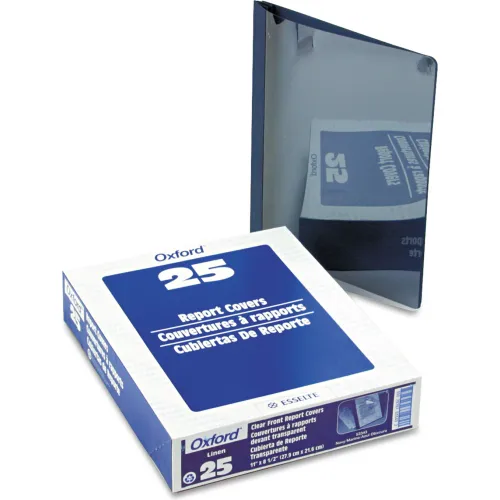 Oxford Clear Front Linen Report Cover, Three-Prong Fastener, 8.5" x 11", Clear/Navy, 25/BX