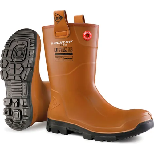 Dunlop LJ2HR4240 RigPro Purofort Safety Mid-Calf Boots, Cleated Outsole, Steel Toe, 10"H, Lt. Brown