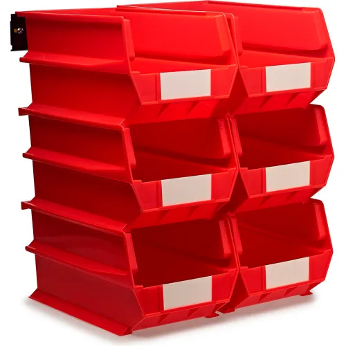 Triton Products LocBin Wall Storage w/ 6 Bins & 6 Rails, 14-3/4"L x 8-1/4"W x 7"H, Red,Polypropylene