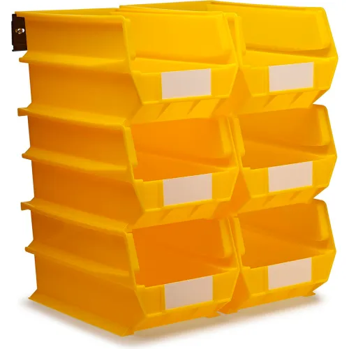 Triton Products LocBin Wall Storage w/ 6 Bins & 6 Rails, 14-3/4"Lx8-1/4"Wx7"H, Yellow, Polypropylene