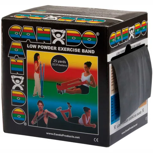 CanDo® Low Powder Exercise Band, Black, 25 Yard Roll, 1 Roll/Box