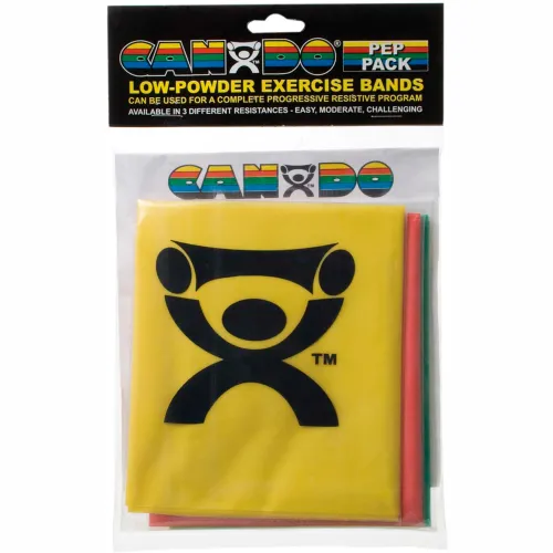 CanDo® Low Powder Exercise Band PEP Pack, 4' Band, Easy - Yellow, Red, Green