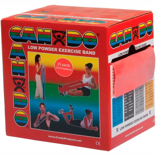 CanDo® Low Powder Exercise Band, Red, 25 Yard Roll, 1 Roll/Box